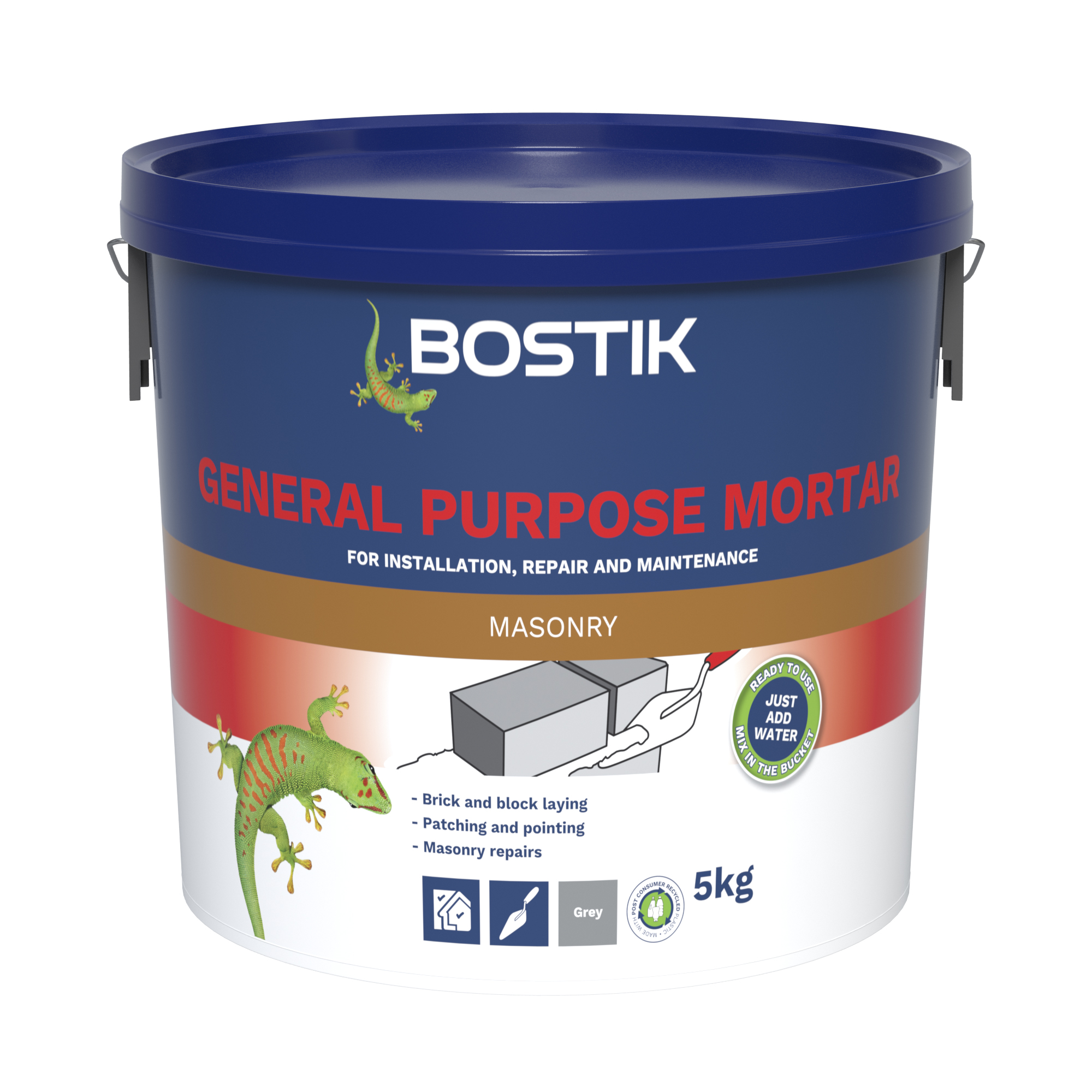 Bostik General Purpose Mortar is a pre-mixed blend of cement and dry sand designed to meet the demands of all interior and exterior masonry applications. Easy-to-use and designed for in-tub mixing, the masonry mortar simply requires the addition of water.