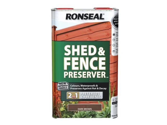 Ronseal Shed and fence preserver is a deep penetrating preserver which eradicates woodworm and prevents rot and decay.