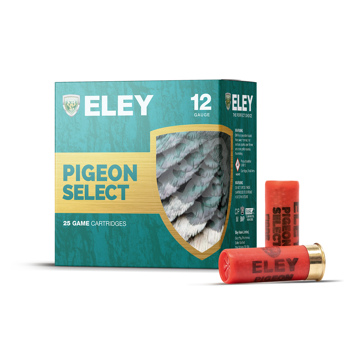 Eley 12 bore pigeon select game cartridges.