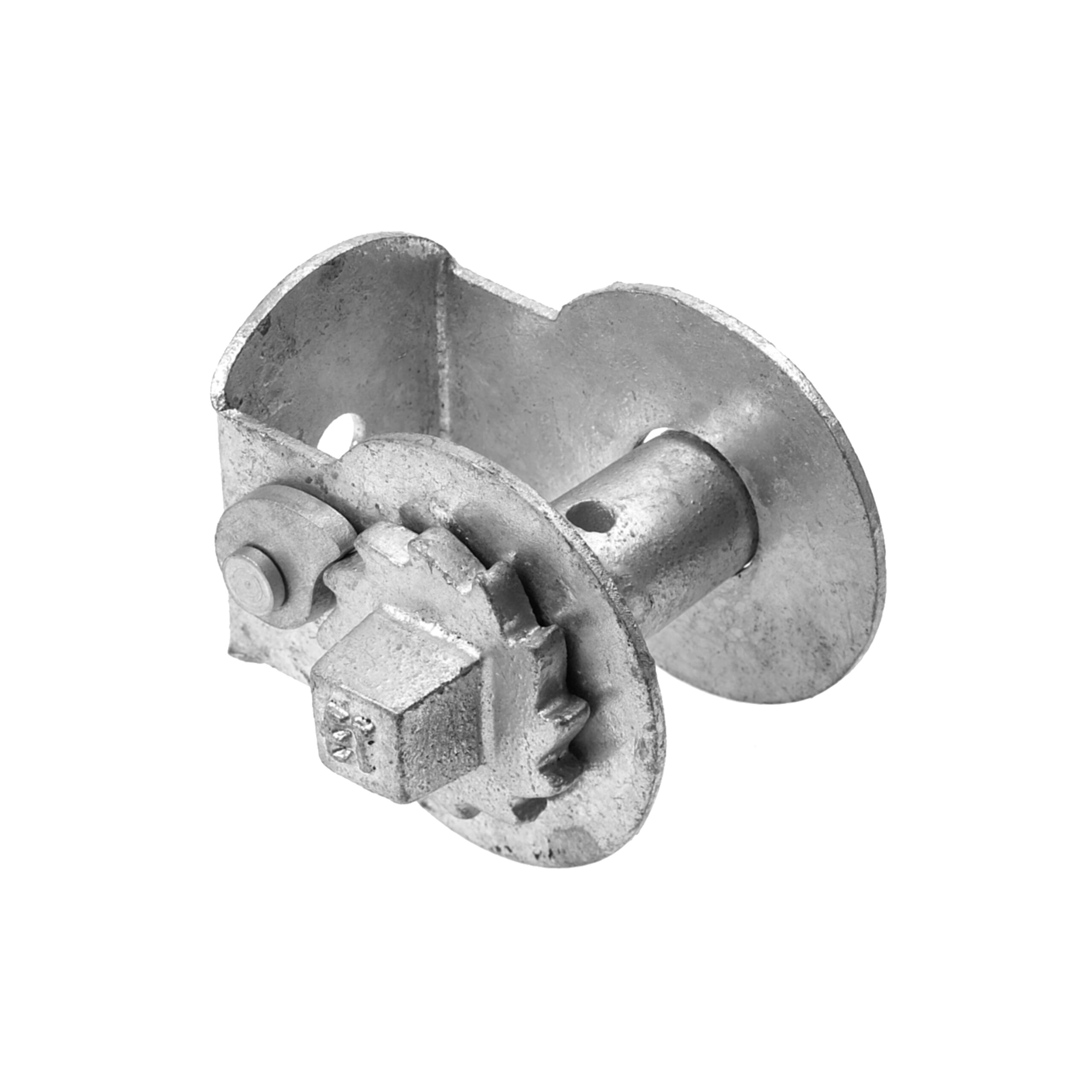 Galvanised ratchet strainer for straining wire on to concrete or wooden posts.